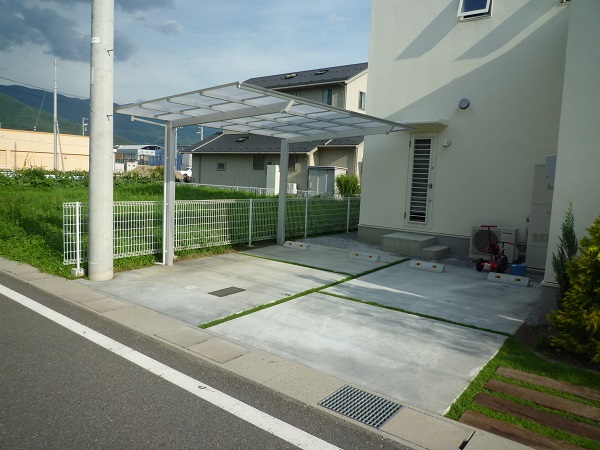 絶対に雑草を生やしたくないのであればコンクリートを打ってしまう事もできます。ただ高額な施工ですので、ここだけはどうしても草を生やしたくないという所や車の乗り入れをする場所等、限定的に使うのがおすすめです。またコンクリートは水を吸収しません。平らだと水たまりができたり、冬場には凍ってスリップの原因になったりするため、水を流すために傾斜を作ったり流れた水を排水する場所を考える必要があります。