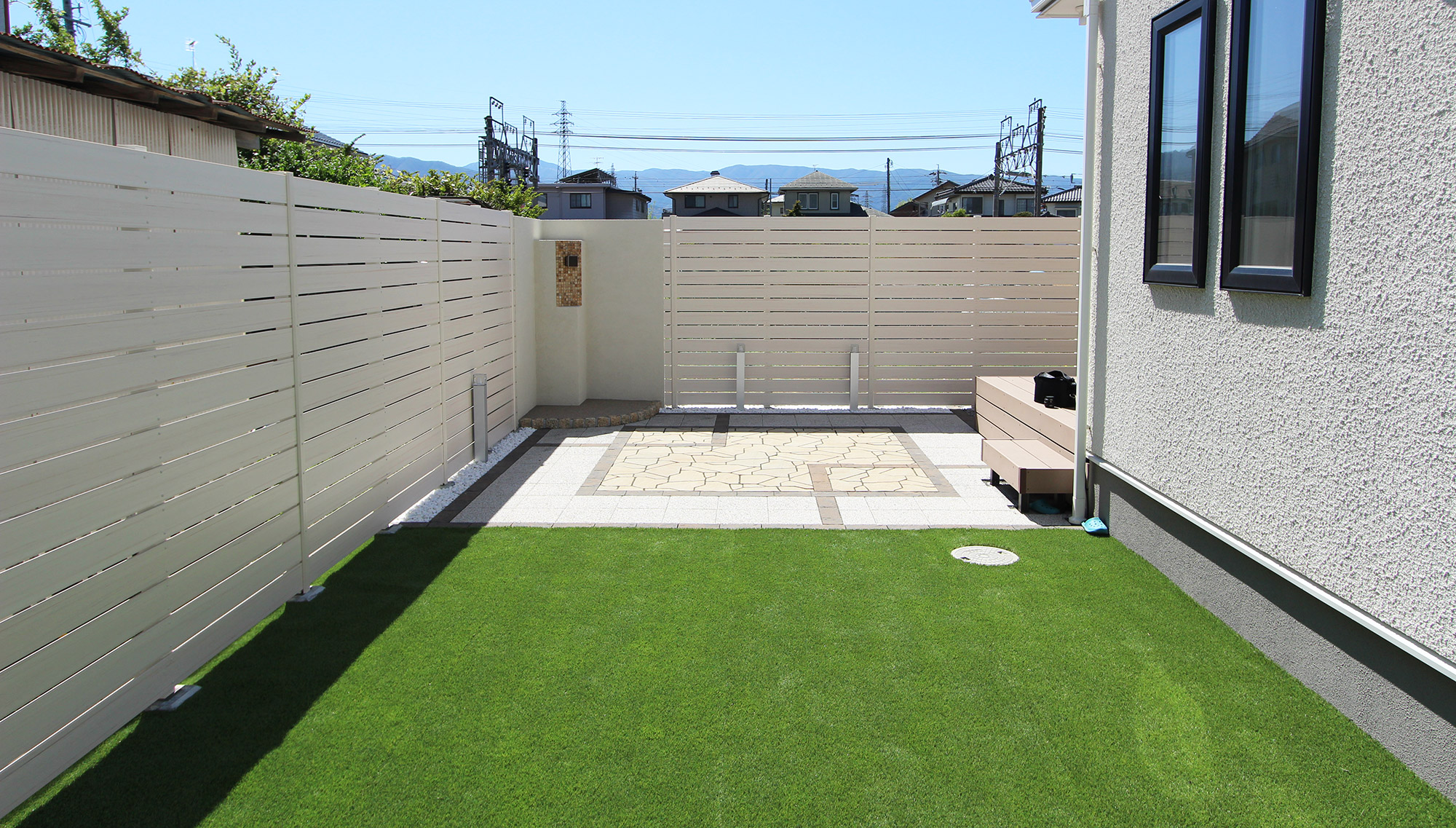 人工芝も防草効果があります。施工後の手間も無い為、人目に付きやすい場所や見た目も気にしたい場所、お子様を遊ばせるようなお庭等にお勧めです。