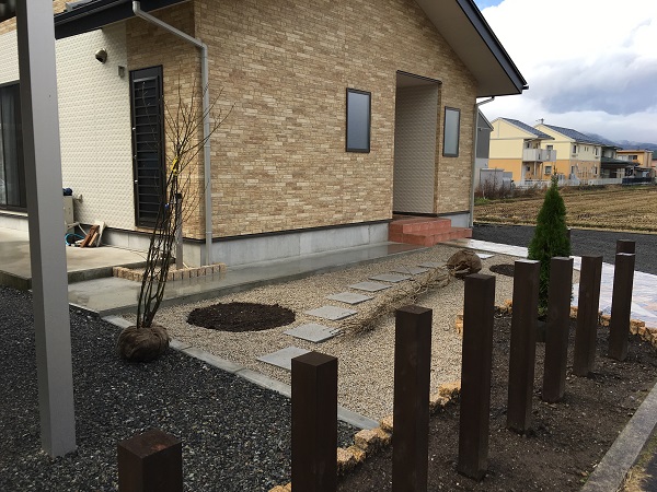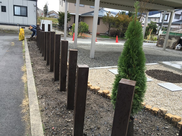 本日は、お客様のガーデン工事の最後の仕上げ。