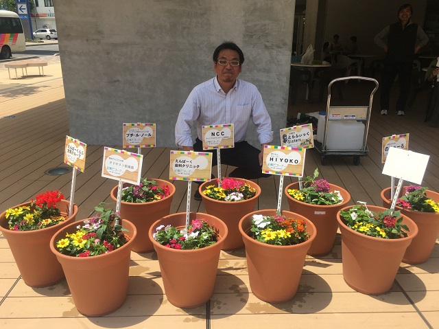 エンパークの周囲に飾る一年草を使ったプランターの制作です。